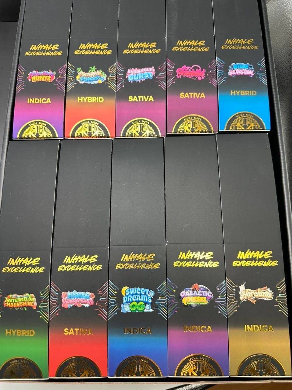 Muha Meds vapes deliver high‑potency THC in both disposable and cartridge formats, with many products featuring live resin and Melted Diamonds extracts to preserve full-spectrum terpenes and cannabinoids. Their cartridges typically contain 80‑90%+ THC, and disposables often offer 1,000 mg (and in some cases 2,000 mg) per device, translating to very strong effects with fewer draws. With flavors spanning sativa, indica, and hybrid strains—such as Super Lemon Haze, OG Kush, and Sour Diesel—Muha Meds emphasizes both potency and flavor authenticity, aiming for an intense yet smooth experience.